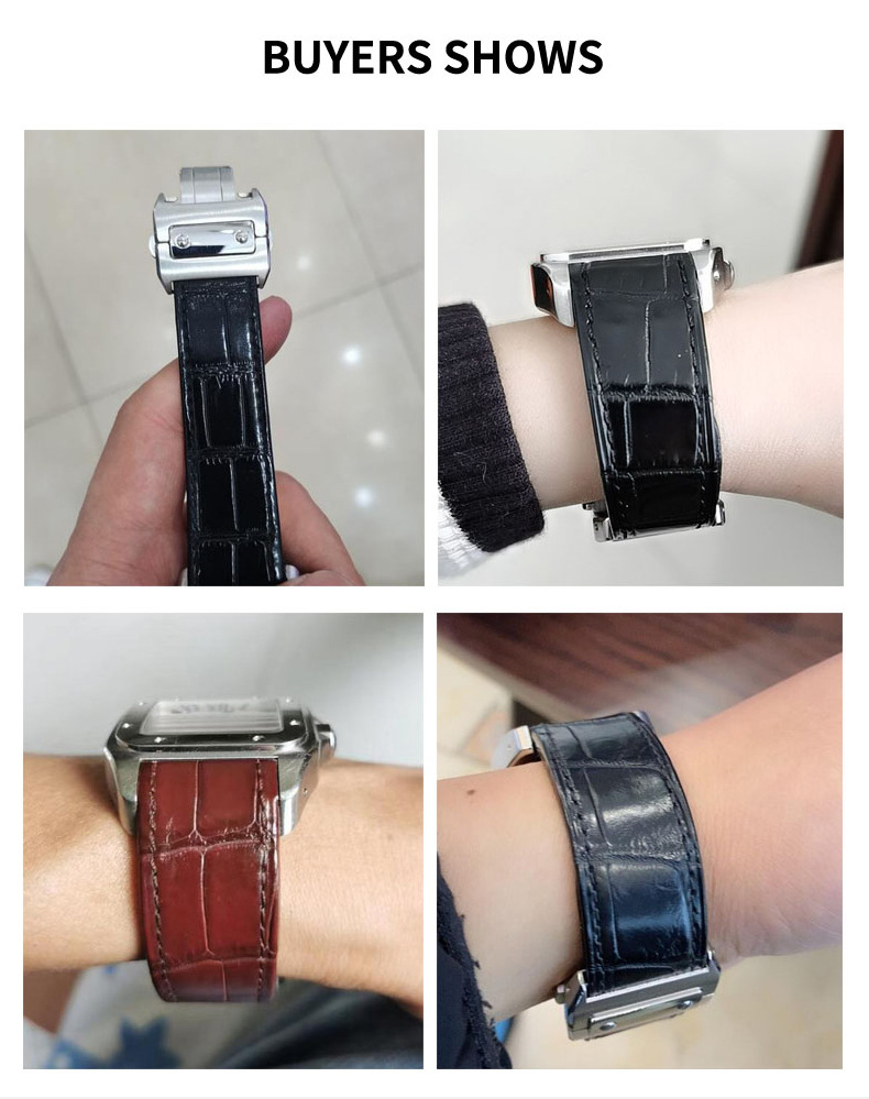 Bracelet de montre en cuir de vache véritable de haute qualité 20 23 le plus cher mm pour Cartier Santos, Bracelet de montre en cuir de vache véritable de haute qualité 20 23 mm pour Cartier Santos vendre